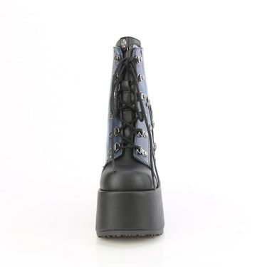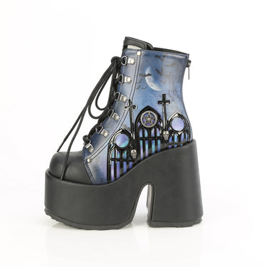 5" (127mm) Chunky Heel, 3" (75mm) Platform D-Ring Lace-Up Dront Ankle Boot Featuring Moonlit Cathedrial Printed Artwork & Charm Detail, Metal Back Zip Closure