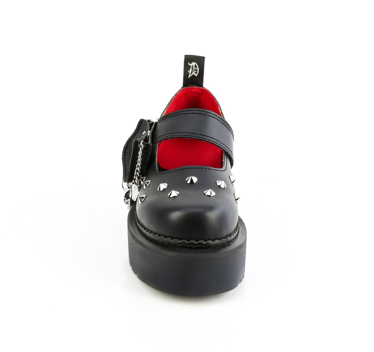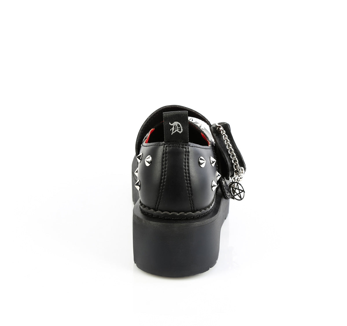2" (51mm) Stacked Platform Combat Maryjane, Featuring Cone Studded Upper w/ Coin Purse Attached to the Strap & Various Hanging Charm Accessories