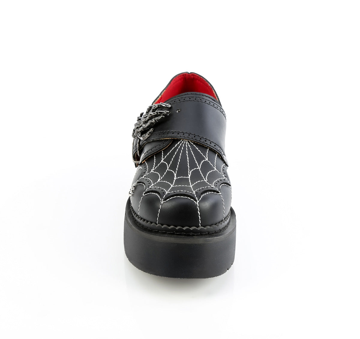 2" (51mm) Stacked Platform Combat Oxford Shoe, Featuring Spiderweb Stitching Detail Upper & Skeleton Buckle Strap w/ Spider Charm